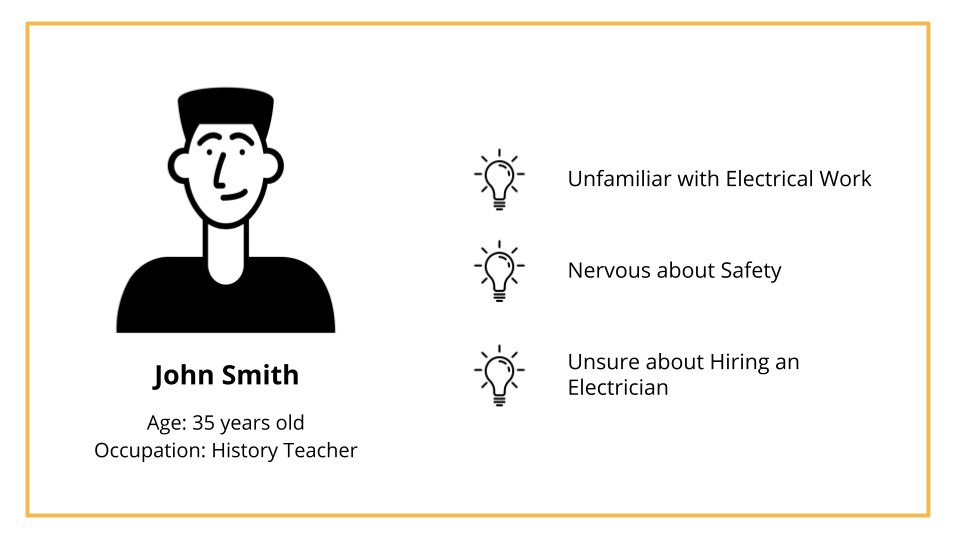 After identifying our three leading insights, we spent developed a simple persona who encompassed the characteristics and pain points we discovered in our user interviews. The persona was used to ground our service blueprint as well as our ideation session. The findings and insights from our user interviews pointed at designing a solution to enhance some aspect of the service that would ease the installation process. I helped create a service blueprint to not only understand where a solution would best situate itself, but as a way for our team to visually map out how the different actors and service phases interact with each other. It gave us a better sense of how a solution, depending on where it’s situated, would impact the overall product service system.